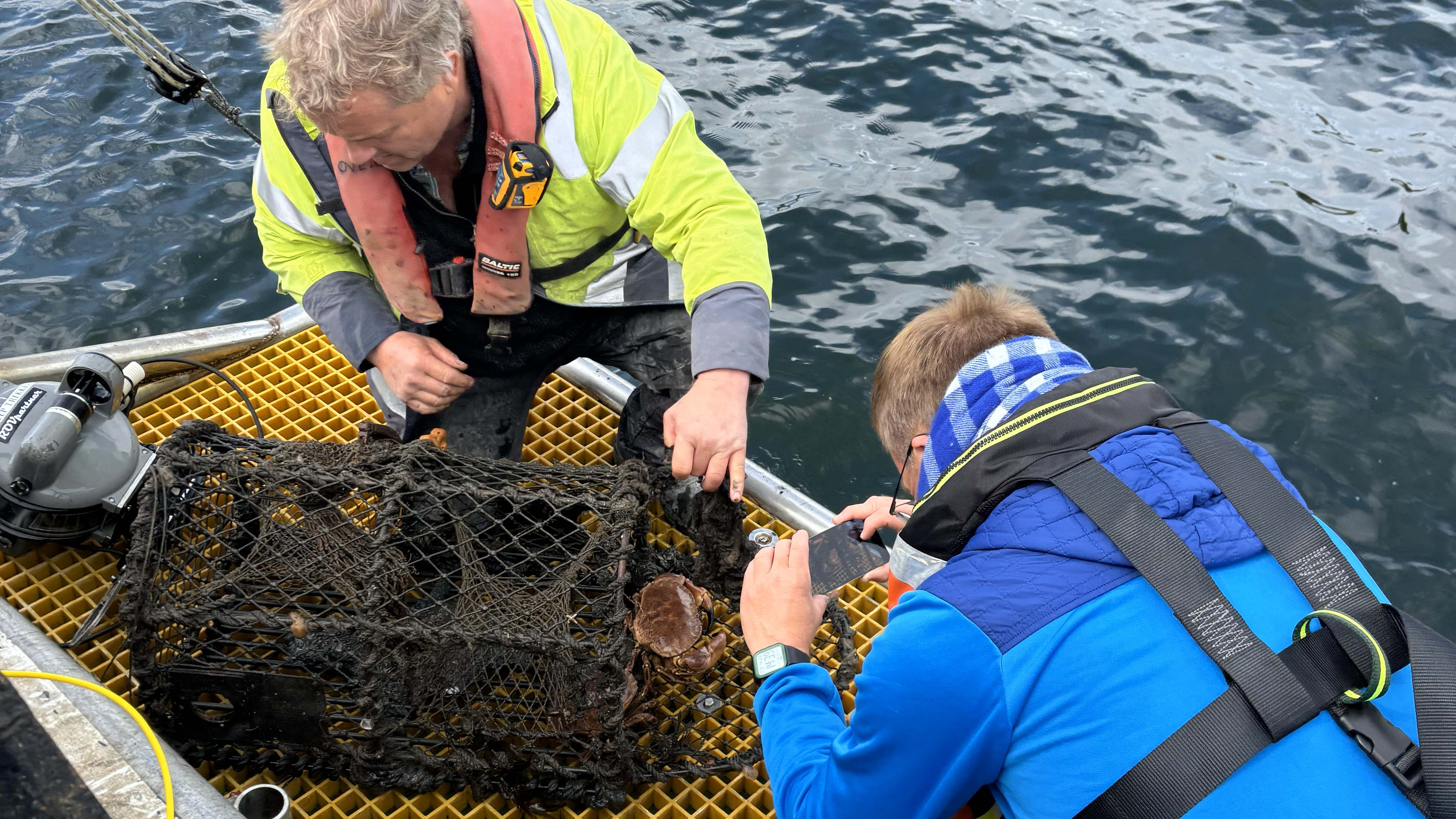 — Når man tar opp en skotteteine så tar man opp litt over to kilo plast. Det er kanskje litt lettere å rydde opp en klappteine på 20 meters dyp enn en skotteteine på 60 meters dyp, men du redder flere dyr og du får opp mer plast ved å ta opp den skotteteina.